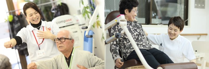 私たちが提供する「コンパスウォーク」のリハビリデイサービスは、 リハビリの専門職の理学療法士をはじめ医療の国家資格をもつ専門家の科学的なリハビリの手法を取り入れた、 歩行・機能回復を目的とする「リハビリデイサービス」です。